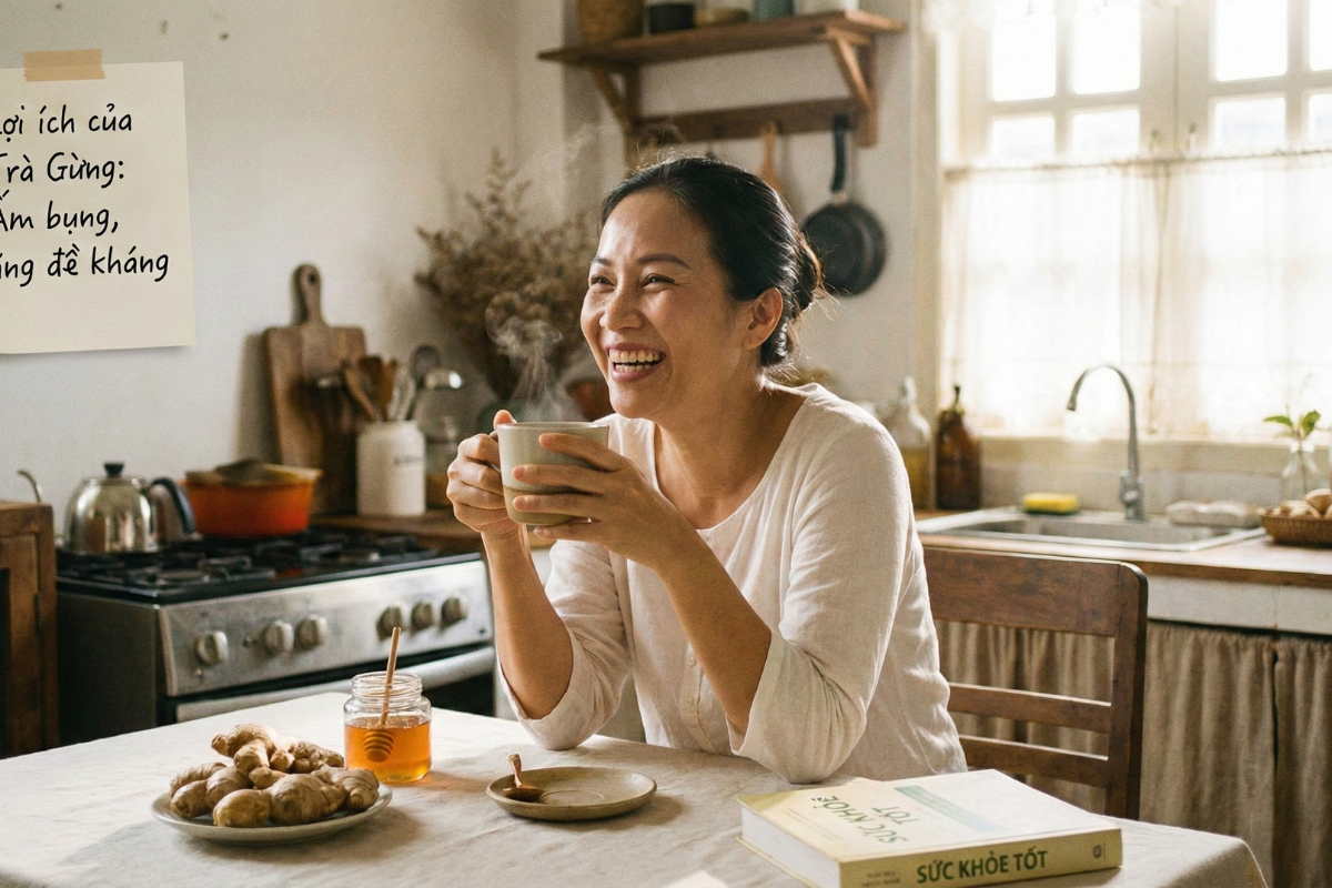 Hoạt chất chính của gừng là gingerol, hợp chất có đặc tính chống oxy hoá và kháng viêm mạnh. Nghiên cứu gần đây cho thấy việc bổ sung gừng có thể giúp giảm hoạt động của các bạch cầu trung tính và hạn chế hình thành bẫy ngoại bào (NETs), từ đó hỗ trợ điều hoà phản ứng viêm và mở ra tiềm năng điều trị các bệnh tự miễn. Đồng thời, đặc tính kháng khuẩn của gừng giúp cơ thể chống lại một số loại vi khuẩn, virus và làm dịu triệu chứng cảm lạnh, đau họng.