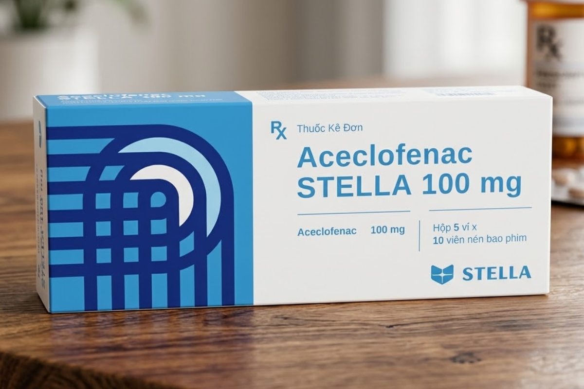 Viên nén bao phim Aceclofenac STELLA 100mg bị thu hồi do vi phạm chất lượng. Ảnh: Thuốc & Sức khỏe